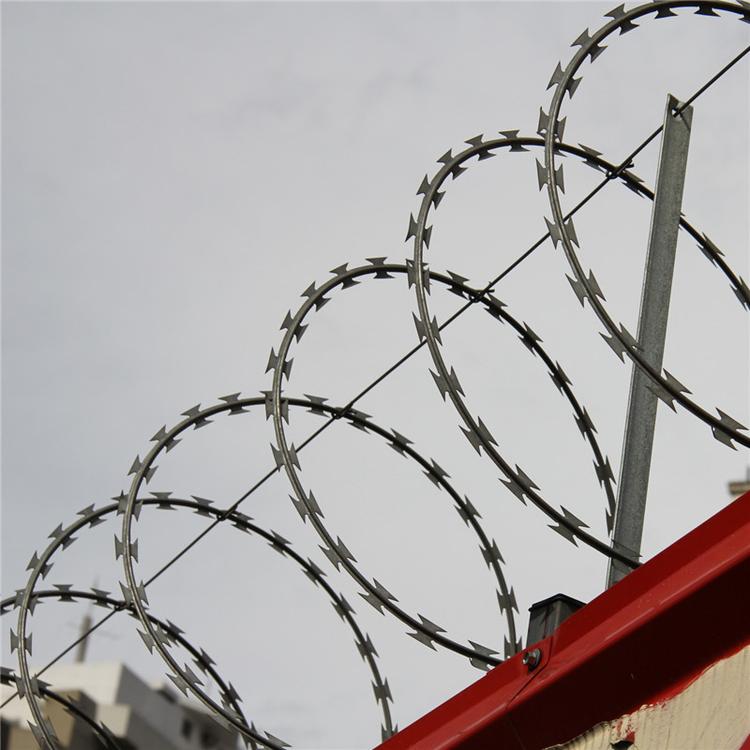 院墙刺丝滚笼分螺旋院墙刺丝滚笼、直线院墙刺丝滚笼,平板院墙刺丝滚笼、防爬院墙刺丝滚笼、防盗院墙刺丝滚笼。院墙刺丝滚笼优势、院墙刺丝滚笼用途、院墙刺丝滚笼特点:院墙刺丝滚笼具有吓阻效果好、美观、施工便利,经济实用,安全防护防爬等优异特点。种类型号:院墙刺丝滚笼BTO-22为国内最常用型号(其它型号也可以订做)。院墙刺丝滚笼安装步骤及简介: