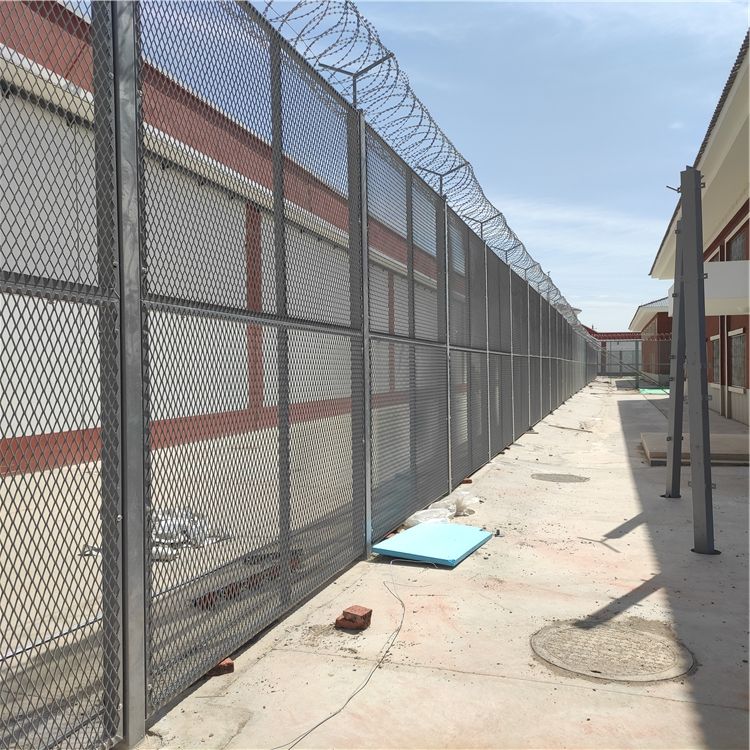 在实际工程中,围墙做到表面平整光滑的基础上,电气专业应注意照明配电箱、监控摄像机、防雷箱、电网控制箱、配电线槽桥架等敷设与安装的隐蔽性。应防止形成攀爬点,导致降低围墙有效高度,给监管安全造成重大隐患。因此本规范规定的围墙表面平整光滑,不只是自身平整光滑,还要求不能有其他的附属突出物。#监狱高墙隔离网 #戒毒所隔离网