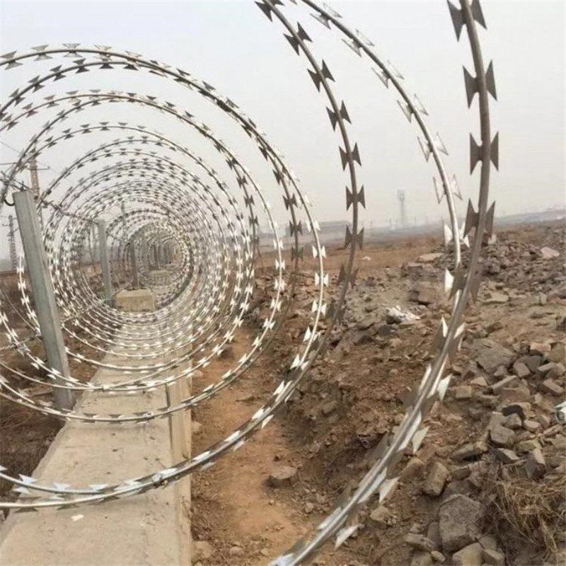 刀片刺笼 的材料结构和应用 刀片刺笼 是一种近年发展起来的防护、隔离能力较强的新型防护网... 刀片刺笼 应用:主要用于园林公寓,机关单位,监狱,哨所,边防等的圈禁防护。 [ 查看详情 ]