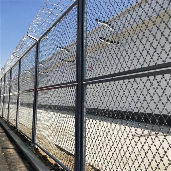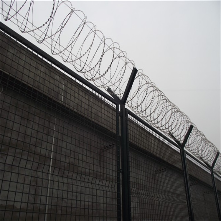 刀刺网隔离围墙 的固定方式: 1、刀刺网隔离围墙连接、紧固件应采用防盗专用螺栓(螺母)加弹簧垫,安装固定后无专用工具无法拆卸,安装...心为距两边20mm的交叉点),与立柱顶部正方形钢板相对应,整体热镀锌处理。电网支架垂直地面安装,其低端离地面为5米。 [ 查看详情 ]