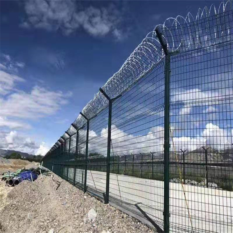 安平县艾瑞金属丝网有限公司是专业生产机场隔离网厂家,拥有专业的生产技术水平,常年生产各种规格型号的机场围界、高安全隔离网,框网等丝网类产品以优质的原材料和严格的加工工艺,赢得同行业和新老客户的信赖。机场围界具有美观、实用、方便运输和安装的特点。如果在机场护栏网顶部加装刀片刺丝、刀片刺绳后又很好的增强了安全防护性能。
